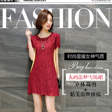 2016夏季新款 修身大碼女裝寬松款 蕾絲雪紡打底裙 潮連衣中裙 /