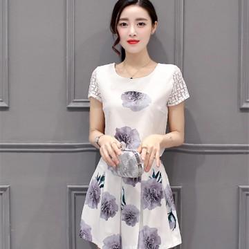 2016夏裝新款 韓版女裝 改良旗袍領 彈力棉質印花連衣裙一件代發(fā) /