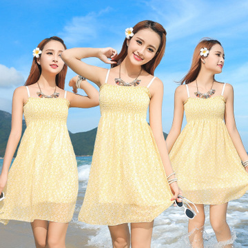 實拍 抹胸吊帶裙連衣裙 沙灘裙 碎花吊帶連衣裙 /