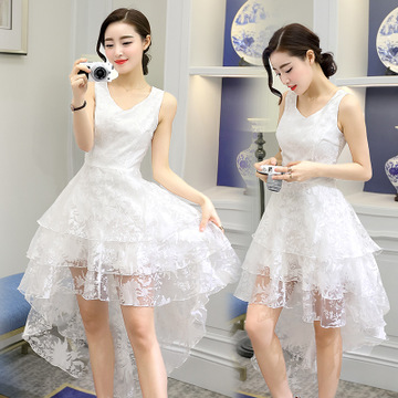 2016夏季歐根紗蓬蓬連衣裙女裝夏無袖中長款名媛氣質(zhì)長裙修身顯瘦 /