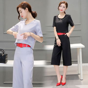 (實拍)2016新款韓版兩件套雪紡衫搭配九分褲氣質(zhì)名媛時尚套裝 /