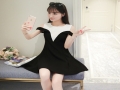 【實(shí)拍】余瀟瀟三色新款露肩甜美輕奢名媛黑白撞色落肩連衣裙 /