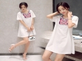誠(chéng)招代理 2016夏裝韓版新款雪紡民族風(fēng)繡花圓領(lǐng)連衣裙女中長(zhǎng)裙女 /