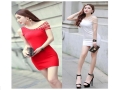2016新款斜肩鉚訂綁帶修身包臀潮連衣裙洋裝修身短裙 /