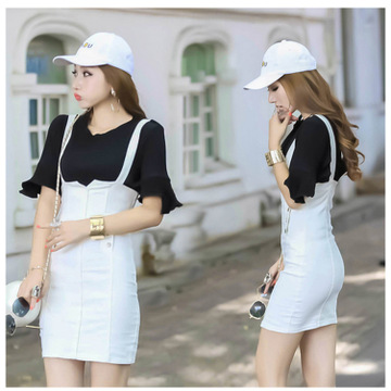 韓國(guó)夏季新品時(shí)尚白色背帶裙修身包臀裙減齡吊帶裙女短裙 /