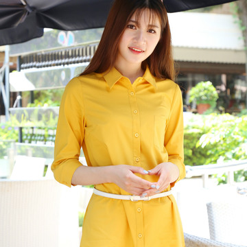 2016春夏季新款中長(zhǎng)款休閑純棉襯衫女七分袖學(xué)院風(fēng)寬松遮擋肚腩 /