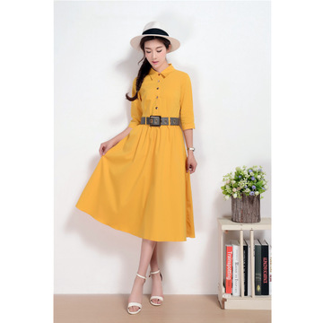 2016新款夏季休閑大擺中長(zhǎng)連衣裙簡(jiǎn)潔大方純色女裝淘寶一件代發(fā) /