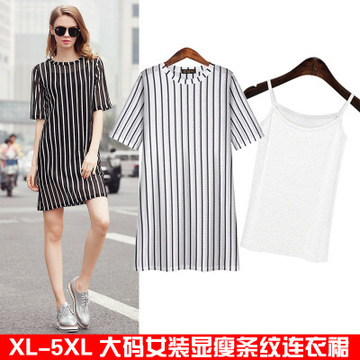 2016夏裝新款 歐美風(fēng)大碼女裝 豎條紋顯瘦連衣裙兩件套 /
