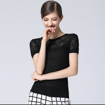 15夏裝女套頭鏤空針織衫桑蠶絲低圓領(lǐng)短袖真絲背心百搭打底衫 /