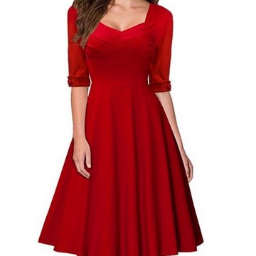 亞馬遜秋冬熱賣新款女裝時尚V領(lǐng)中袖修身氣質(zhì)大擺連衣裙 L197 /
