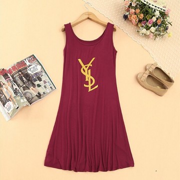 廠家直銷歐美風(fēng)新款夏女字母燙金莫代爾中長裙 寬松大碼連衣裙 /
