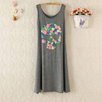 2016春款廠家直銷莫代爾骷髏頭四色發(fā)泡印花無袖背心裙 /