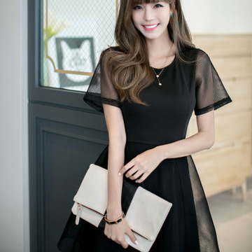 實(shí)拍新款淘寶商城女裝連衣裙 夏季2016短袖韓版蕾絲連衣裙子F6638 /