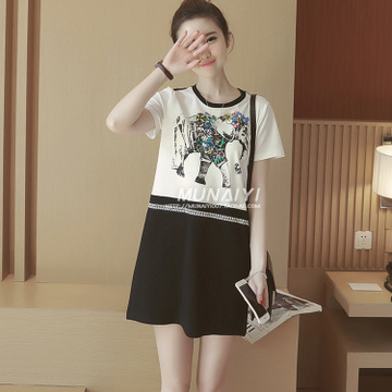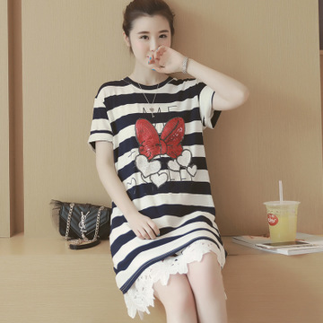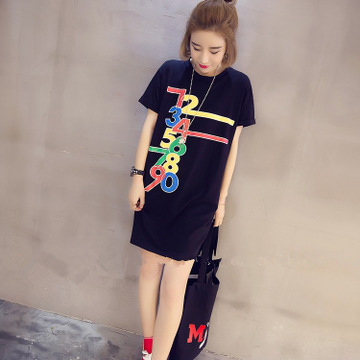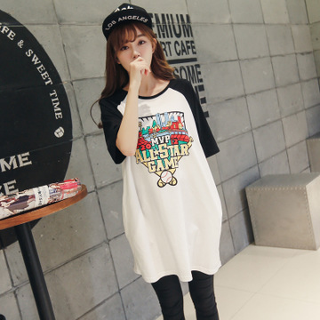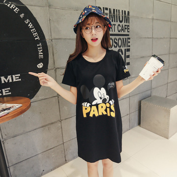實拍2016夏裝新款 韓版女裝寬松中長款卡通時尚圓領(lǐng)短袖T恤裙 /