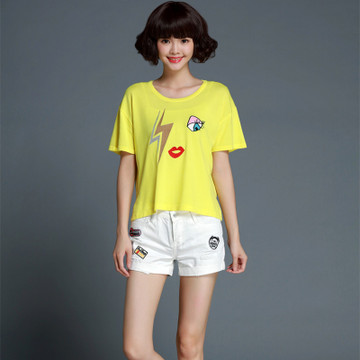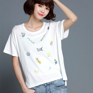 新品短袖t恤女夏季韓國青年學(xué)生印花卡通圓領(lǐng)寬松針織簡約體恤衫 /
