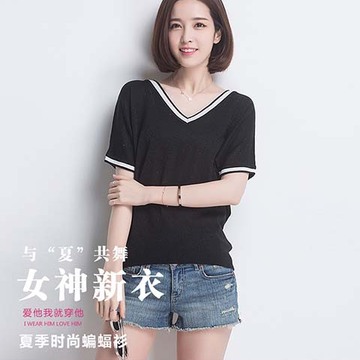 2016新款冰絲針織衫短袖T恤蝙蝠袖套頭韓版上衣女寬松韓版 /