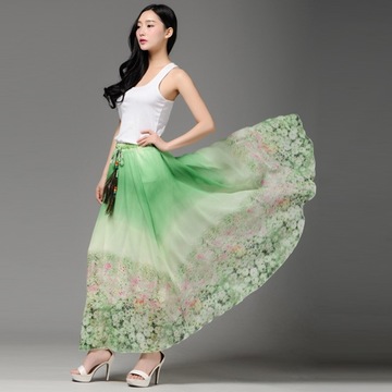 • 2016夏裝新款印花花色雪紡半身裙長(zhǎng)裙修身百褶裙波西安米亞大擺裙 /
