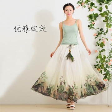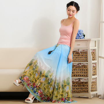 • 2016夏裝新款松緊腰系帶雪紡半身裙 印花修身沙灘裙長(zhǎng)裙女裝批發(fā) /