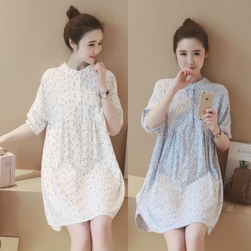 2016夏裝森女系新款女繡花立領(lǐng)棉麻孕婦連衣裙 /