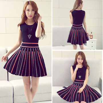 無袖針織連衣裙韓國東大門2016夏季新品修身顯瘦荷葉邊短裙子3304 /