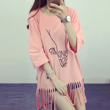 2016中長(zhǎng)款寬松長(zhǎng)袖T恤女裝百搭打底衫 /