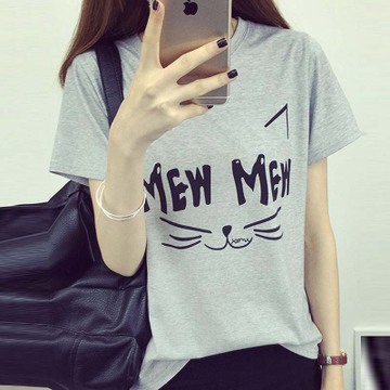 2016夏季新款韓版MEW喵可愛(ài)印花上衣短袖T恤 /