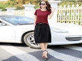 時尚潮流夏季新款女套裝短袖圓領(lǐng)純色上衣中長裙兩件套 /