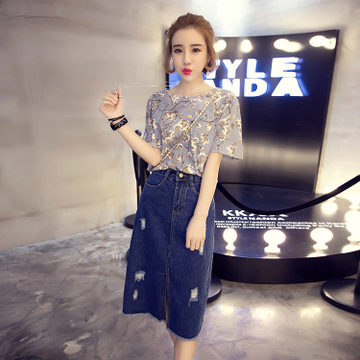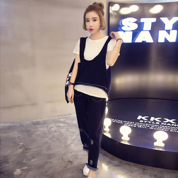 俏格調(diào)2016好搭配女裝三件套T恤背心割破長(zhǎng)褲套裝 /