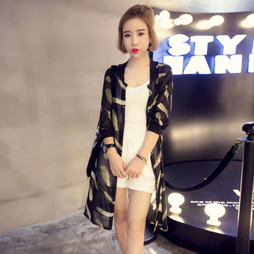 俏格調(diào) 2016夏裝新款印花七分袖中長(zhǎng)款薄款外套韓版防曬衣空調(diào)衫 /