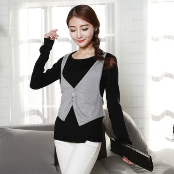 廠家直銷(xiāo)2016春款假兩件套針織衫 新款女式假兩件真是產(chǎn)一件代發(fā) /
