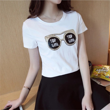 韓版夏季女短袖圓領(lǐng)套頭T恤眼睛亮片印花批發(fā)廠家直銷(xiāo) /