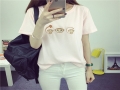 2016春款女裝新款套頭圓領(lǐng)純棉三只猴子刺繡寬松短袖t恤 /