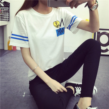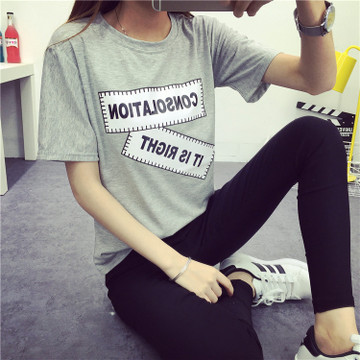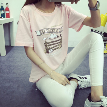 2016春款女裝新款套頭圓領(lǐng)可愛甜美字母短袖t恤 /
