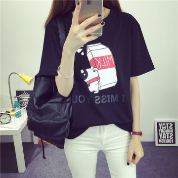 2016春款女裝新款套頭圓領(lǐng)純棉牛奶寬松短袖t恤 /