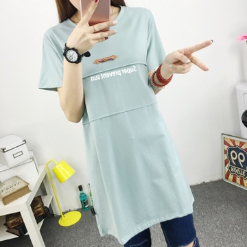 2016夏季新款凈色百搭寬松中長款套頭圓領短袖女式T恤 /