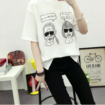 韓版卡通印花寬松顯瘦圓領短袖T恤女學生打底衫上衣 /