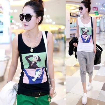 2016韓國背心女夏外穿印花休閑露肩百搭時(shí)尚無袖上衣T恤寬松 /