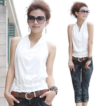 夏裝新款女背心韓版掛脖無袖T恤上衣 /