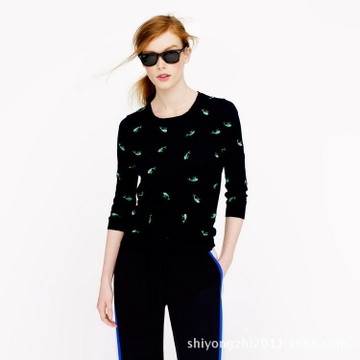 2015新款毛衣小鯨魚刺繡電腦繡花圓領(lǐng)純羊絨毛衣女士毛衫針織衫 /