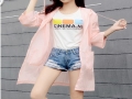 防輻射夏季女裝背后印花寬松連帽薄款中長蝙蝠袖 透視防曬衣外套 /