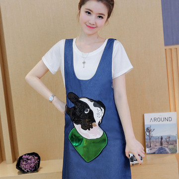 2016夏裝牛仔背帶裙套裝韓版修身學(xué)院風(fēng)連衣裙女 /