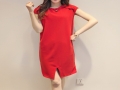 雪紡連衣裙 2016新款韓版修身短袖連衣裙 夏季開叉裙 /