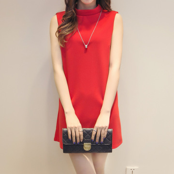 2016新款夏裝連衣裙批發(fā) 中長(zhǎng)款無(wú)袖連衣裙 后紐扣無(wú)袖裙子 /