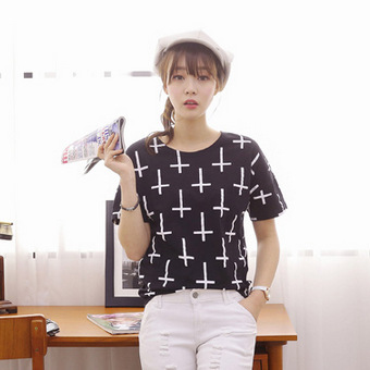 2016時尚實拍韓版修身字母印花T恤女短袖夏季百搭圓領(lǐng)打底女t恤衫 /