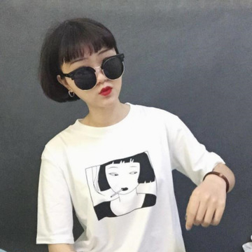 2016新款ulzzang網(wǎng)紅同款超級元?dú)馍倥閭H款短袖寬松T /