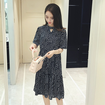 柯可佳女裝2016春夏新款大碼女裝 胖MM寬松顯瘦雪紡印花中長(zhǎng)連衣裙 /