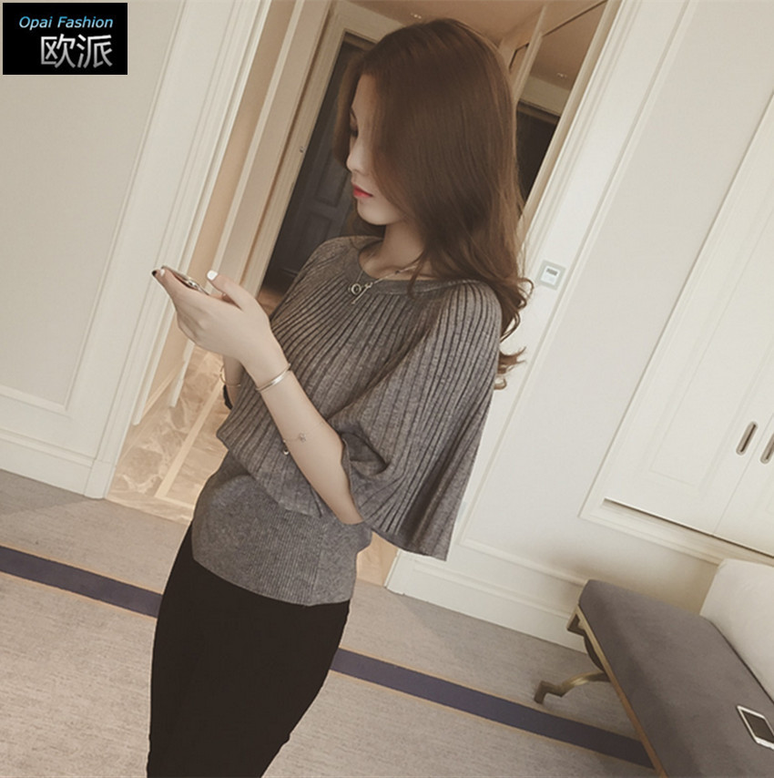秋季新款女裝 韓國(guó)東大門新款百搭超舒適多色豎紋斗篷蝙蝠衫上衣 /