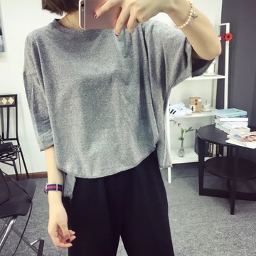 夏季新品韓版立體剪裁短袖蝙蝠衫文藝范寬松休閑套頭衫女上衣 /