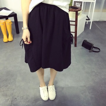 夏季新品韓版百搭棉麻文藝半身裙高腰寬松休閑高腰裙女裝短裙 /
