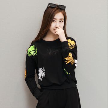 秋裝新款直筒圓領(lǐng)花朵刺繡薄衛(wèi)衣不加絨阿里一件代發(fā) /